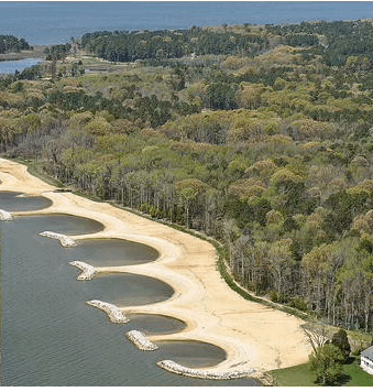 Living Shorelines is a new concept with various designs, all incorporating some aspect of habitat creation. Living Shorelines are generally intended to serve as environmentally-friendly means of protecting coastal infrastructure, and will be discussed separately.